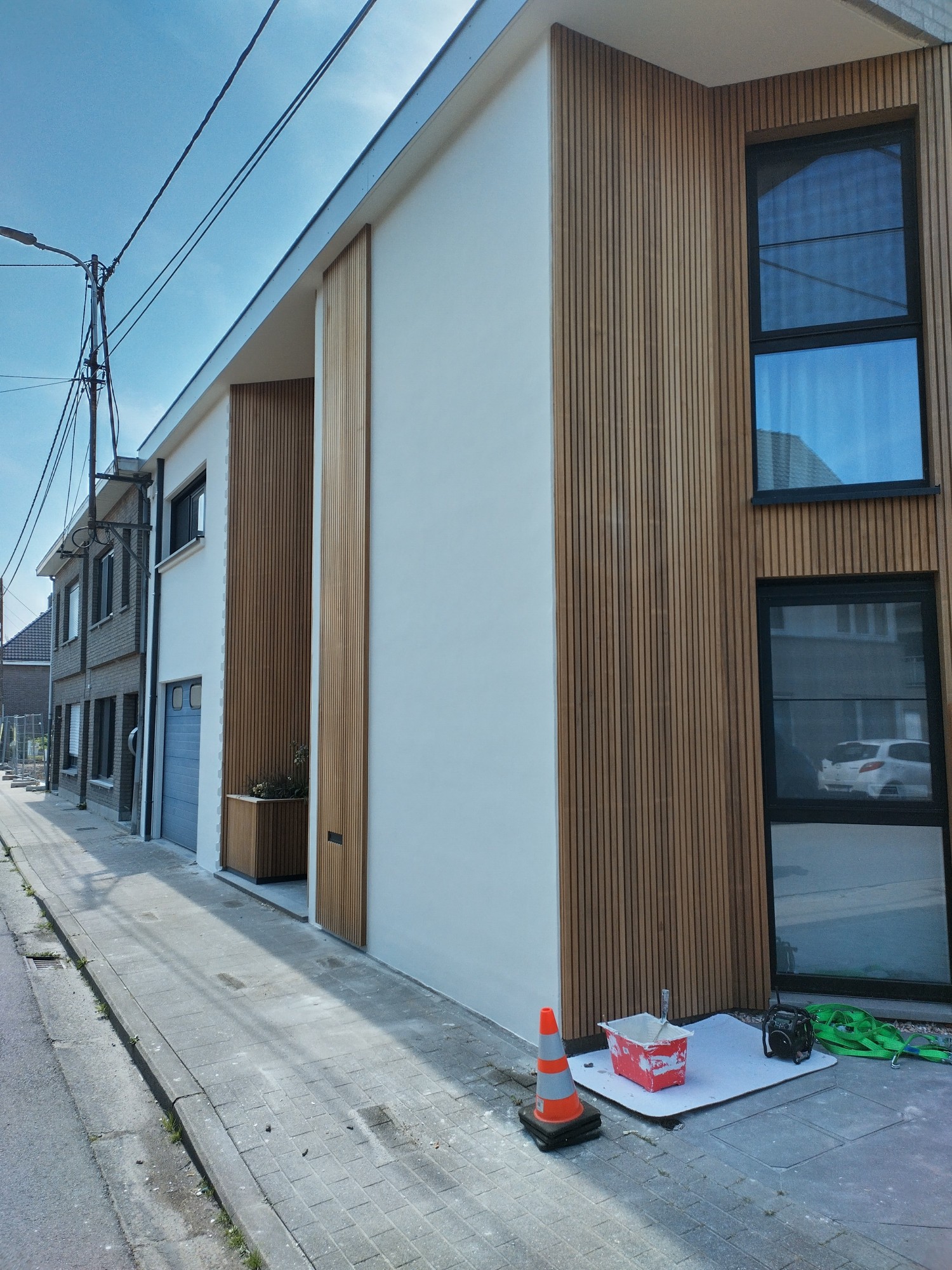 We toveren de grijze stenen gevels om tot een wit plaatje, waardoor dit straatbeeld een moderne look kreeg.